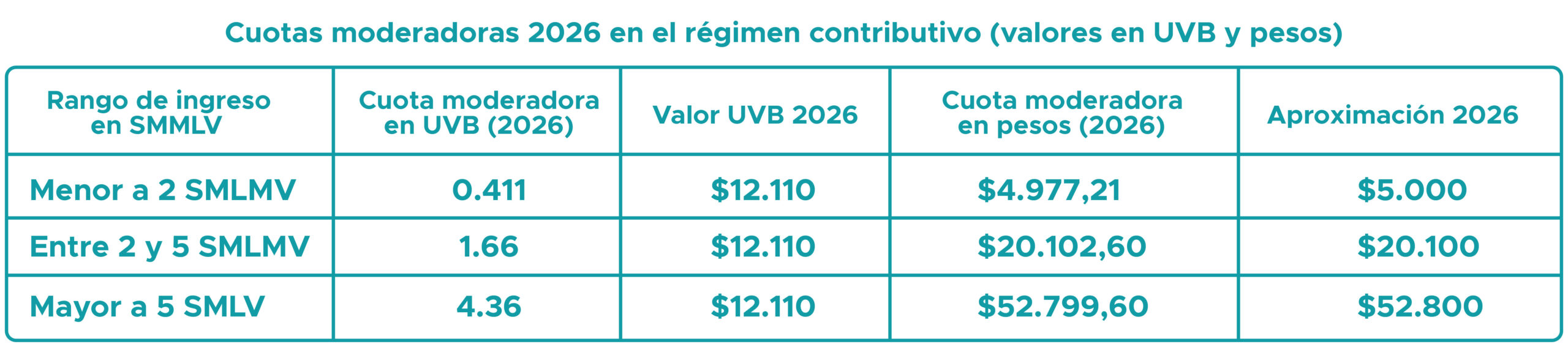 Los valores de las cuotas moderadoras año 2026, que deben ser pagados en efectivo previo a la atención en la IPS, son las siguientes: